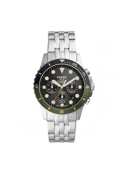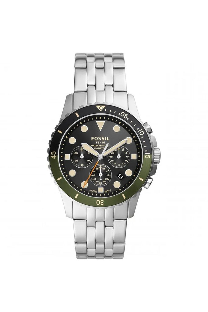 This 42mm FB-01 features a black sunray dial, chronograph movement and silver-tone stainless steel bracelet.